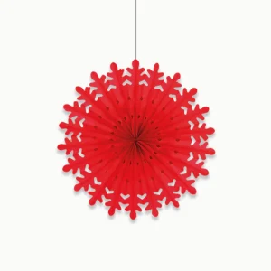 Abanico Papel Copo de Nieve Ø 30 cm Rojo