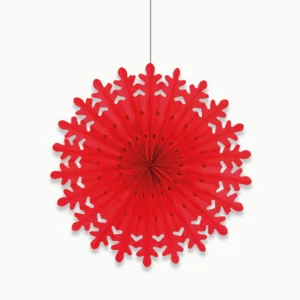 Abanico Papel Copo de Nieve Ø 25 cm Rojo