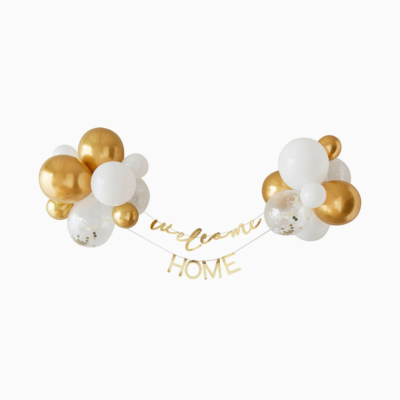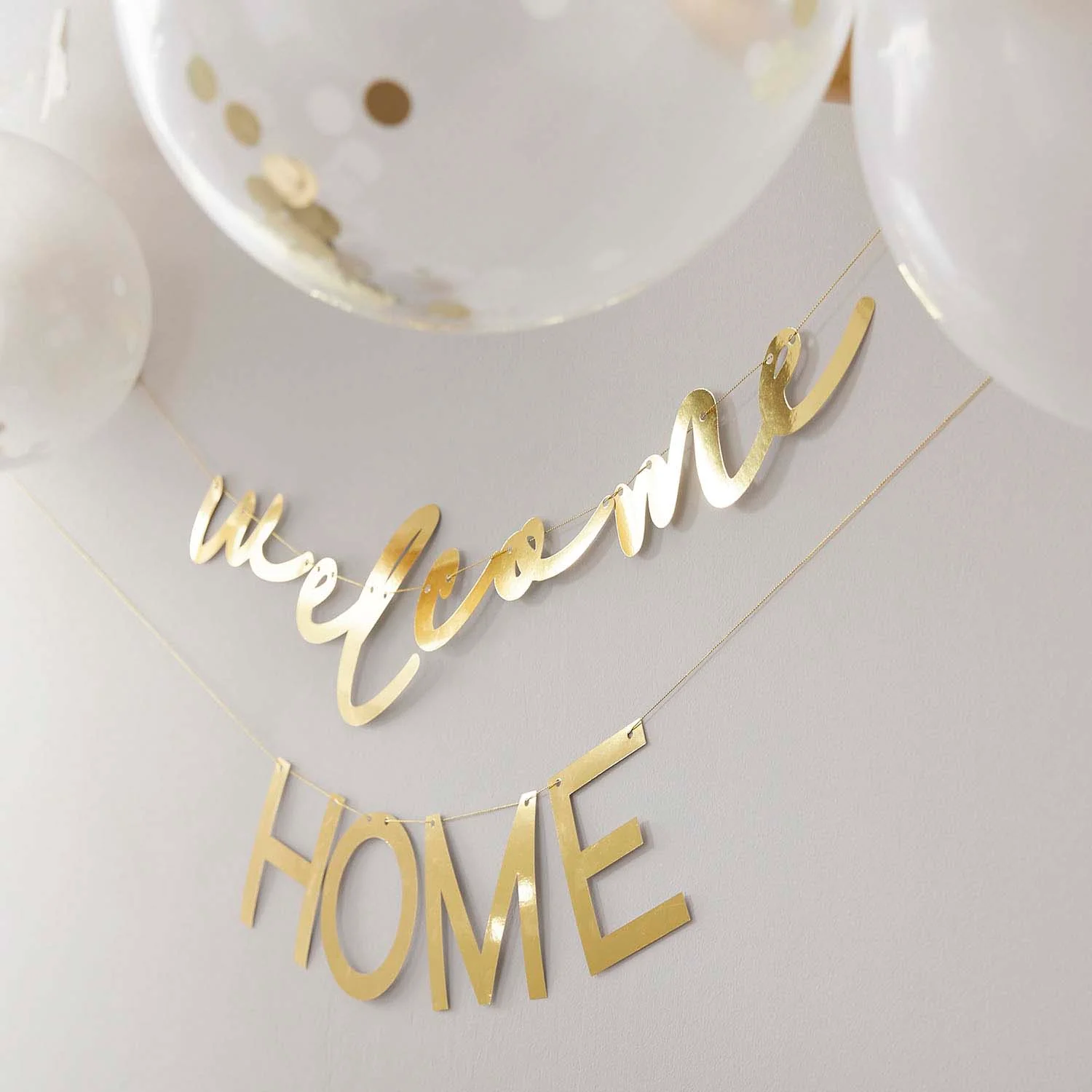 ¡Haz que su primer día en casa sea súper especial con este banderín con globos de bienvenida a casa!